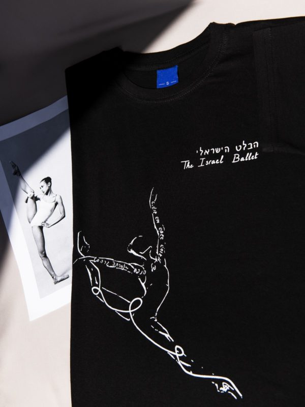 חולצה קצרה עם כיתוב בצבע לבן ולוגו של הבלט הישראלי