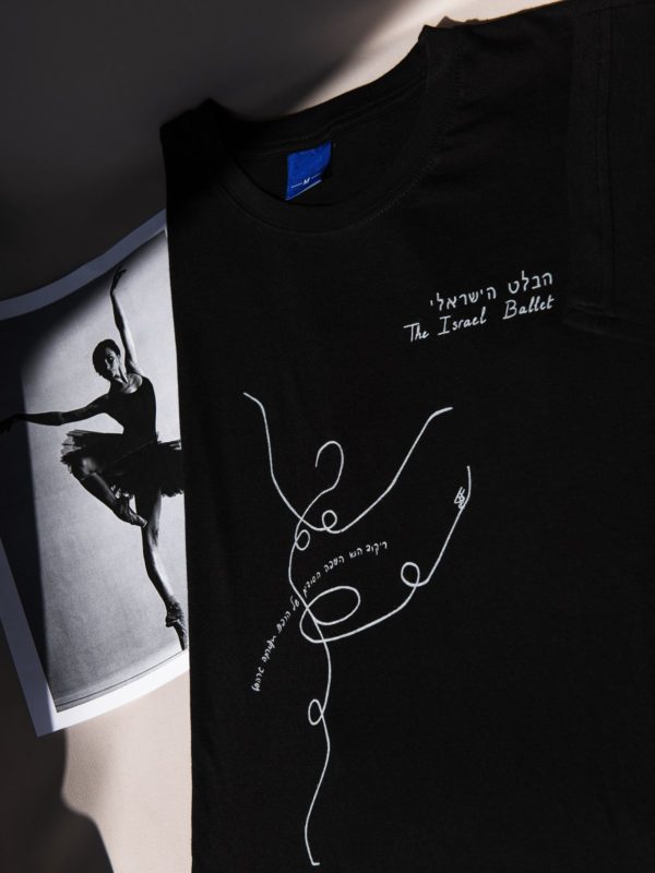 חולצה קצרה עם כיתוב בצבע לבן ולוגו של הבלט הישראלי
