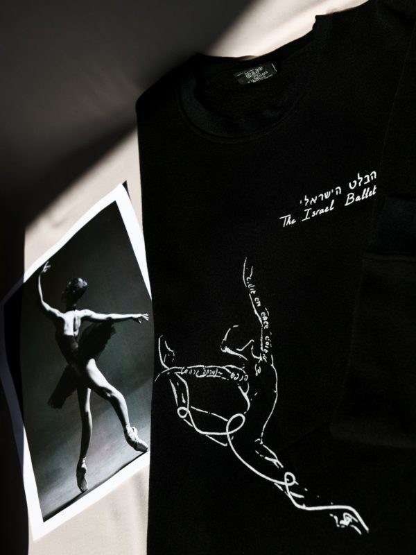 סוויטשירט עם כיתוב בצבע לבן ולוגו של הבלט הישראלי