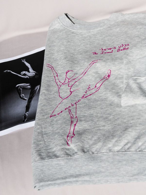סוויטשירט עם כיתוב בצבע פוקסיה ולוגו של הבלט הישראלי